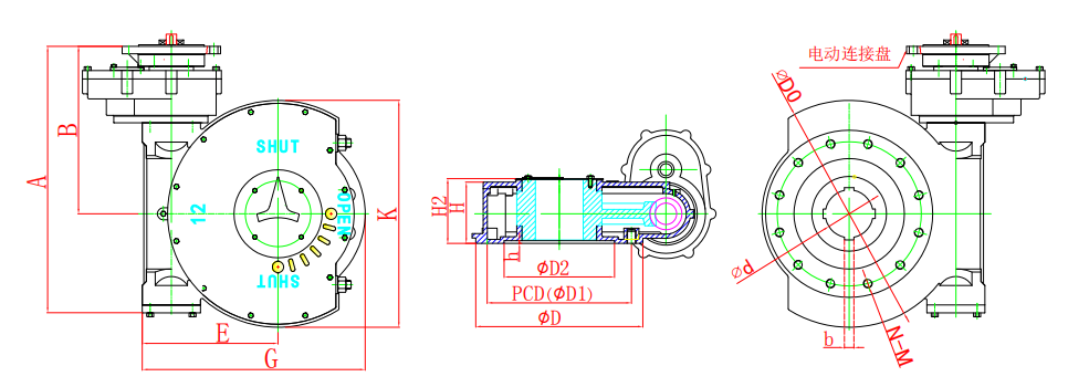 該系列是直齒輪箱與蝸輪箱對(duì)接成為蝸輪減速增壓機(jī)構(gòu),配上電裝組合成為三級(jí)傳動(dòng),實(shí)現(xiàn)了智能自動(dòng)化,提高了工作,機(jī)械總效率,使用小電裝開(kāi)大閥門(mén),節(jié)省了使用成本。
